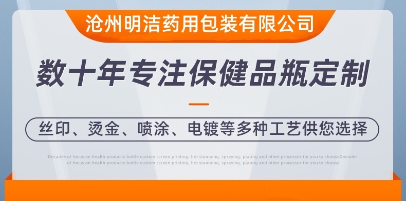 滄州明潔專(zhuān)注于生產(chǎn)100ml亞克力瓶,膠囊瓶,藏紅花包裝瓶,壓片糖果瓶,膠囊瓶,蟲(chóng)草瓶,黑枸杞瓶,雪菊瓶,西洋參瓶,鐵皮楓斗石斛包裝,靈芝孢子油瓶,東革阿里膠囊瓶,用心選材,產(chǎn)品規(guī)格眾多,款式新穎。