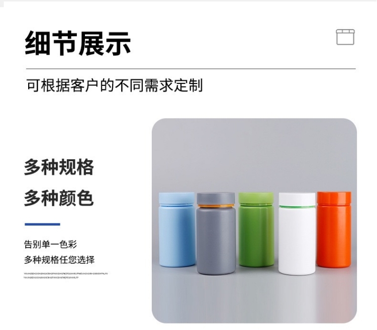 滄州明潔生產(chǎn)銷售千林瓶,鈣片瓶,150ml雙色蓋瓶,120ml保健品瓶,hdpe膠囊含片分裝瓶,NMN保健品瓶,軟膠囊瓶,壓片糖果瓶,藥片膠囊瓶,保健品塑料瓶,中藥丸瓶,避光塑料瓶,產(chǎn)品規(guī)格多,外觀新穎,彰顯大氣。