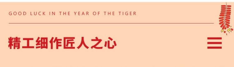 多種組合的吉祥禮盒,或繁或簡(jiǎn),或大或小,豐儉由人。吉祥平安,除舊迎新,歡樂喜慶, 結(jié)彩張燈的主題,祝頌著新年的福祉。愿我們的用心之作,滿載著新春好禮,給您的節(jié)日帶來快樂、喜悅和吉祥!