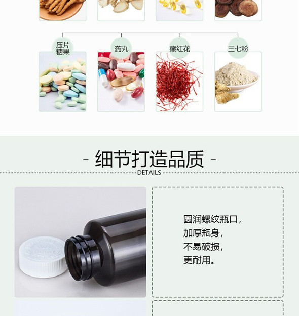 滄州明潔生產(chǎn)銷(xiāo)售壓旋蓋瓶,翻蓋塑料瓶,300ml固體藥瓶,鈣片粉劑瓶,綠色保健品瓶,中藥粉瓶,藥片瓶,膠囊瓶,藥丸瓶,軟膠囊瓶,亞克力瓶,壓片糖果瓶,保健品塑料瓶,中藥丸瓶,避光塑料瓶,固體片劑瓶,塑料藥瓶,產(chǎn)品規(guī)格全,外觀(guān)新穎,彰顯大氣。