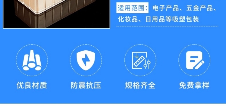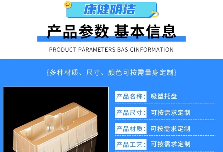 滄州明潔致力生產(chǎn)保健品吸塑包裝,醫(yī)藥吸塑盒,吸塑內(nèi)托,食品吸塑內(nèi)托,化妝品吸塑內(nèi)襯,五金工具吸塑包裝,電子托盤吸塑包裝,玩具吸塑包裝,果蔬盒,PP/PVC/PS/PET/BOPS吸塑包裝制品。用心選材,規(guī)格眾多,款式新穎,質(zhì)量過(guò)硬。