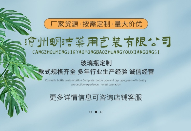 滄州明潔專注于精華液滴管瓶,爽膚水噴霧瓶,原液分裝瓶,乳液瓶、滴管噴霧瓶、化妝品分裝瓶、香水瓶、走珠瓶、膏霜瓶、眼霜瓶、面霜瓶、香薰瓶、面膜瓶、提供蒙砂、真空電鍍、噴涂、絲印、高溫、燙金燙銀等加工服務(wù)。