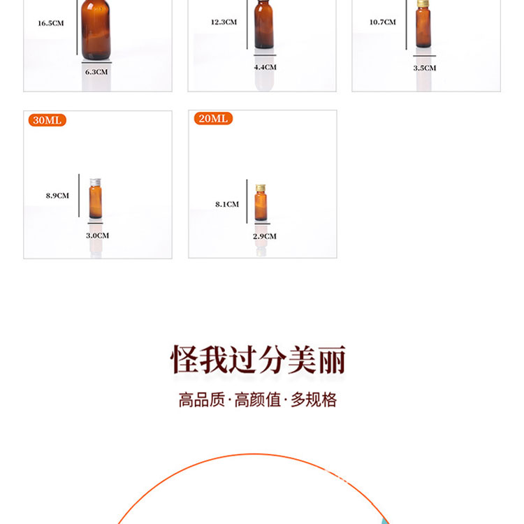 棕色口服液瓶適用硅膠塞或丁基膠塞,普通雙涂鋁蓋,鋁塑組合蓋,外形美觀。