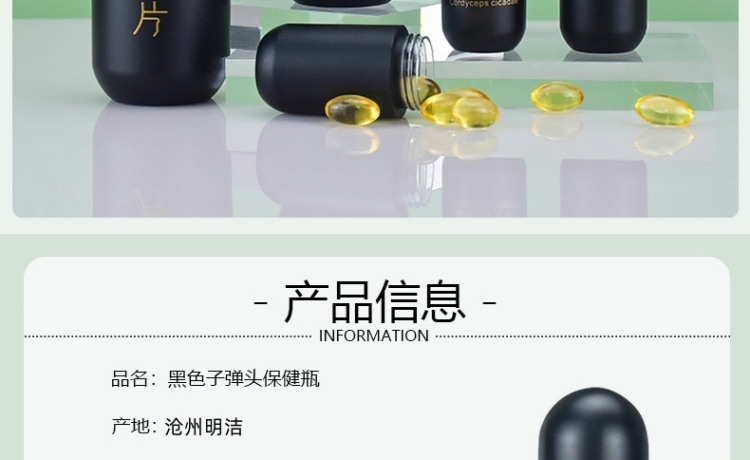 滄州明潔生產(chǎn)銷售磨砂黑金瓶,磨砂保健品瓶,黑色藥瓶,NMN保健品瓶,膠囊瓶,軟膠囊瓶,亞克力瓶,壓片糖果瓶,藥片膠囊瓶,保健品塑料瓶,中藥丸瓶,避光塑料瓶,ps保健品瓶,固體片劑瓶,塑料藥瓶,產(chǎn)品規(guī)格多,外觀新穎,彰顯大氣。