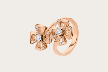 以四頁花瓣作為造型的鉆戒,在手指上_綻放的花朵,這種花同樣是取材于羅馬生活,寓意為_幸福。在花卉上點綴著鉆石打造出花冠、花心的樣子,每_都有不同的個性,有玫瑰金色和銀色的選擇,價格從一萬以上不等。