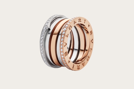 這個系列以多圈螺旋作為標(biāo)志,在剖面上印刻寶格麗的英文名稱。它的靈感來自于古羅馬斗獸場,層層環(huán)繞的戒指有金色、白色、玫瑰色的組合選擇,重現(xiàn)羅馬的富麗堂皇,這個系列也成為了經(jīng)典戒指,有素環(huán)和鑲鉆的樣式。