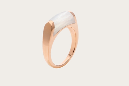 這是寶格麗_受歡迎的一個系列,充滿意式品味的扇形已經(jīng)成為寶格麗的標(biāo)志。它是從羅馬馬賽克獲得的設(shè)計靈感,將寶石鑲嵌在戒指中,另外一側(cè)是鉆石鑲嵌七顆,看起來極為華麗,和_落幕的羅馬之城相呼應(yīng)。