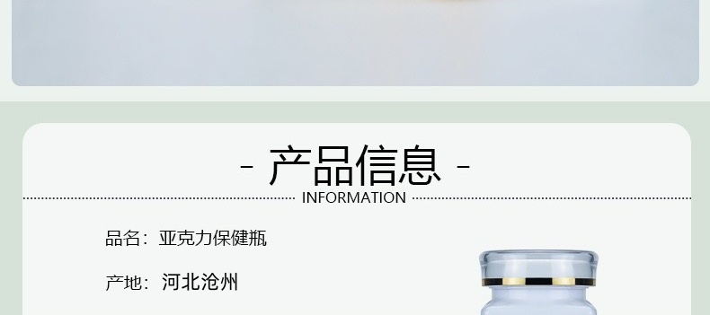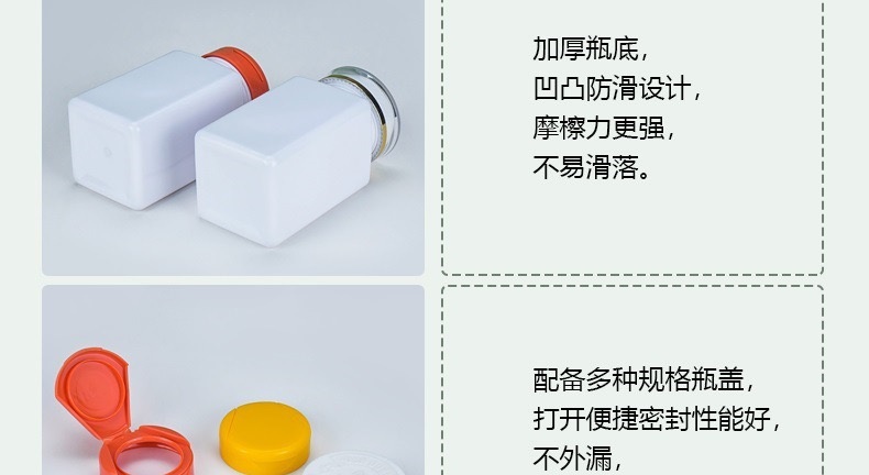 滄州明潔專注于生產(chǎn)PET保健品瓶,方形膠囊瓶,NMN保健品瓶,150ml壓片糖果瓶,膠囊瓶,內(nèi)膽亞克力瓶,軟膠囊瓶,含片瓶,藥片膠囊瓶,避光塑料瓶,ps保健品瓶,固體片劑瓶,塑料藥瓶,用心選材,規(guī)格眾多,外觀新穎,彰顯大氣。