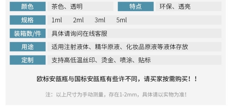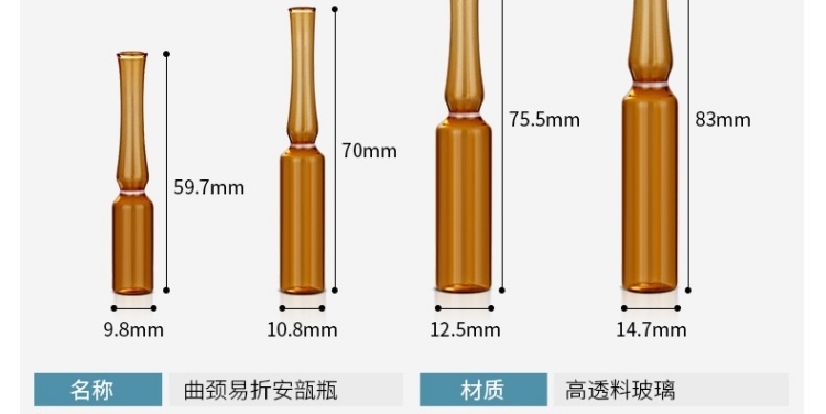 滄州明潔專注于水針安瓿瓶,歐標(biāo)安瓿瓶,針劑瓶,中性硼硅安瓿瓶,棕色安瓿瓶,琥珀色安瓿瓶,茶色安瓿瓶,易折安瓶,色環(huán)刻痕安瓿瓶、印字安瓿瓶,易折安瓿,玻璃安瓿,注射劑瓶,曲頸安瓿,用心選材,質(zhì)量可靠。
