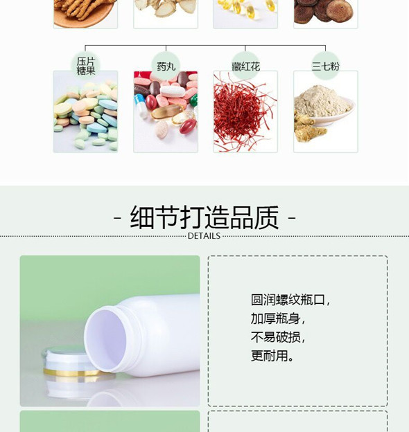 滄州明潔生產(chǎn)銷售藥片瓶,固體藥瓶,雙層蓋塑料瓶,保健品瓶,PET小藥瓶,翻蓋膠囊瓶,藥片瓶,含片瓶,中藥丸瓶,軟膠囊瓶,粉劑粉末瓶,pet塑料瓶,圓肩瓶,vc瓶,鈣片瓶,避光保健品瓶,醫(yī)藥包裝瓶。產(chǎn)品規(guī)格全新穎,品質(zhì)好。