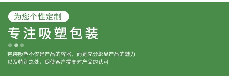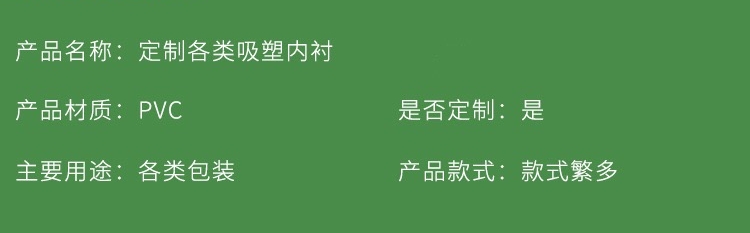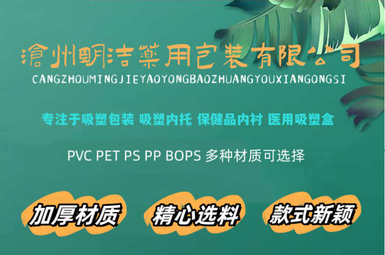 滄州明潔致力生產(chǎn)植絨吸塑內(nèi)托,吸塑托盤,食品吸塑,保健品吸塑包裝,醫(yī)藥吸塑盒,吸塑內(nèi)襯,藥用塑料托,藥瓶托盤,PP/PVC/PS/PET/BOPS吸塑包裝制品。用心選材,規(guī)格眾多,款式新穎,質(zhì)量過硬。